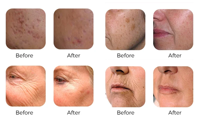 The core function of the fractional laser head: Skin reshaping. It primarily stimulates collagen regeneration, thereby addressing skin problems such as enlarged pores, fine lines and wrinkles, acne scars (pockmarks), and sagging skin with lack of elasticity.